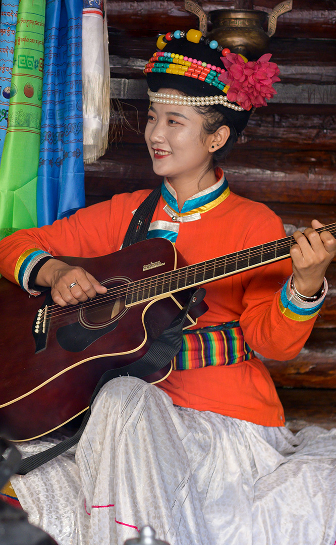 摩梭人是納西族的一個(gè)支系,多聚居在寧蒗縣永寧鄉(xiāng)的瀘沽湖畔,人口約8萬(wàn)。摩梭民居就地取材,用圓木橫壘為墻,建成合院式寨樓居住,這類井干式建筑又稱木楞房,具有較好的御寒保溫性能,體現(xiàn)了順應(yīng)自然的生態(tài)觀。摩梭人保留了母系大家庭的基本形態(tài),呈現(xiàn)在您眼前的是一個(gè)完整的摩梭家庭的四合院,由正房、經(jīng)堂、花樓、門樓等構(gòu)成,正房坐北朝南,通稱祖母房。居住一家中最年長(zhǎng)的女性,同時(shí)也是一大家人飲食、待客、議事的核心場(chǎng)所...