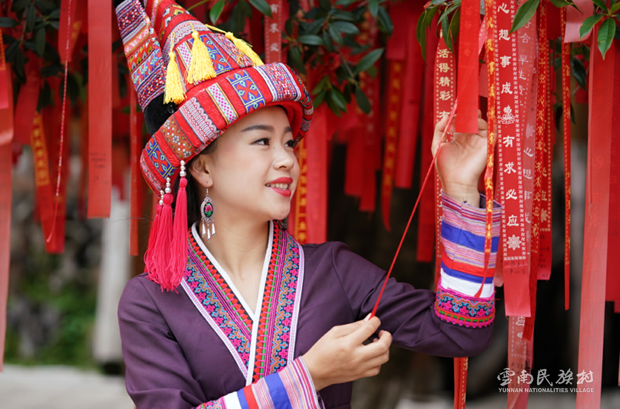 彝族在云南境內(nèi)約471萬(wàn)人,是省內(nèi)人口最多、分布最廣的少數(shù)民族,主要聚居在金沙江、元江流域和哀牢山、無(wú)量山腹地。彝族是一個(gè)能歌善舞的民族,民間打歌、跳樂(lè)之風(fēng)盛行,大三弦、跌腳舞久負(fù)盛名。火把節(jié)是彝族最具特色的民族節(jié)日。彝族村占地50余畝,三虎浮雕墻與虎頭內(nèi)祖師形象表現(xiàn)了彝族虎鷹文化。太陽(yáng)歷廣場(chǎng)圖騰柱上有太陽(yáng)、虎、火和八卦圖形象,周圍環(huán)繞著10個(gè)朝向不同的月球造型,外圓周有12生肖石雕。依山而建的“...